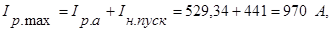 где Iр.а - рабочий ток линии, питающей ЦПП, в аварийном режиме работы, согласно расчетам Iр.а = 529,34 А. Iн.пуск - номинальный пусковой ток наиболее крупного электродвигателя, получающего питание по защищаемой ветви