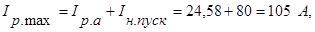 где Iр.а - рабочий ток линии, питающей ЦПП, в аварийном режиме работы, согласно расчетам Iр.а = 24,58 А. Iн.пуск - номинальный пусковой ток наиболее крупного электродвигателя, с учётом трансформации Iн.пуск =80 А. Тогда