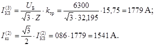 Полное сопротивление до точки КЗ, с учётом сопротивления энергосистемы Z = 32.195 Ом. Исходя из этого получим значения трёхфазного и двухфазного токов КЗ: