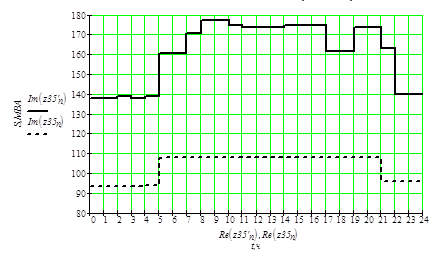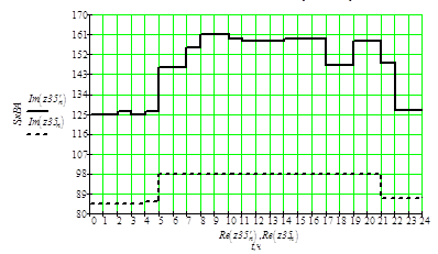 Рис.1.2. График нагрузки трансформаторов Т1 и Т2 в зимний режимный день для стороны 35 кВ. Для летнего режимного дня графики строятся аналогично, поэтому сразу приведем график суммарной (существующей