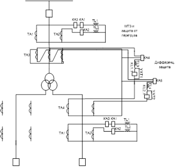 Схема защиты трансформатора Т1