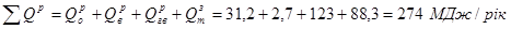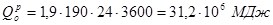 Технологічні потреби: Річна витрата теплоти на технологічні потреби в джоулях обчислюється за формулою: