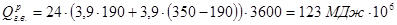 де tк.л. – температура холодної (водопровідної) води у літній період, °С (при відсутності даних tк. – 15°С); β – коефіцієнт, яким враховують зниження середньої витрати води на гаряче водопостачання у літній період відносно опалювального (при відсутності даних β =0,8, а для підприємств курортних і південних міст β =1). Річна витрата теплоти в джоулях на гаряче водопостачання житлових і громадських будівель визначається за формулою