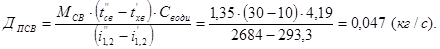 де ΔМпр – кількість води зі шламом що надходить в ОПВ з сепаратора, кг/с; Двп – кількість вторинної пари, яка виділяється з продувальної води, кг/с; Мсв – кількість сирої води що проходить через ОПВ, кг/с;
