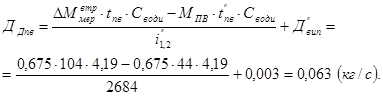 де Мпв – кількість хімічно-очищеної води що надходить до деаератора підживлюючої води, кг/с.