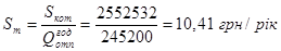 де, Цк – ціна тепла, яке відпускається споживачам 1 ГДж тепла, грн./ГДж; Річний прибуток котельні