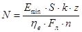 де Fл – світловий потік одного прожектора, лм. В нашому випадку Fл =40000 лм.