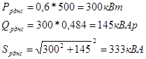Рном, - номинальная мощность приемника; Рр, - активная расчетная мощность; Qp, - реактивная расчетная мощность; Sр, - полная расчетная мощность; Кс, - коэффициент спроса принимаем по данным практики; tgφ - соответствует характерному для данной группы приёмников cosφ. Расчетную нагрузку для узла системы электроснабжения, содержащего группы приемников электроэнергии с различными режимами работы, определяют с учетом разновременности максимумов нагрузки отдельных групп.
