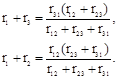 Розв’язавши отриманні рівняння відносно опорів r1 ,r2 і r3 , отримаємо формули переходу від з’єднання “трикутником ” до еквівалентного “зіркою”: