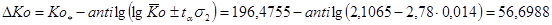 Граница доверительного интервала по Ко: