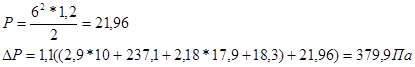 Расчетное полное давление Pв, Па, которое должен развивать вентилятор, складывается из потерь давления в вентиляционной системе DР и потерь давления в калорифере Dрк