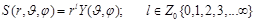 Решения отыщем по методу Фурье. Для разделения переменных искомое решение представим как произведение радиальной и угловой функций. Общее правило: Если в дифференциальном уравнении в частных производных можно выделить оператор, включающий несколько переменных, и привести его к аддитивной форме, придавая ему вид суммы слагаемых, определённых лишь для отдельных переменных, то исходное дифференциальное уравнение распадается на систему дифференциальных уравнений. Каждое из них и их решения определены лишь на переменных соответствующего оператора-слагаемого. Частные решения исходного дифференциального уравнения выбираются в мультипликативном виде, как произведения функций – решений отдельных уравнений системы. Этот результат сформулируем в виде краткого правила: «Оператор аддитивен-Решения мультипликативны». Этот подход встречается всюду в теории многоэлектронных систем – атомов и молекул. 6.7.1. Радиальную часть общего решения сферического уравнения Лапласа выбирают в простейшем виде степенной функции от радиальной переменной, Показатель степени l полагают целочисленным неотрицательным числом