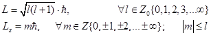 Соответственно при пространственном вращении возможные дискретные значения модуля момента импульса и его проекций на ось вращения определяется двумя формулами