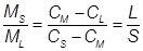 Рис. 3. Двухфазная диаграмма состояний, на которой показаны процессы отвердевания Предположим, что вначале смесь имела состав CM при температуре T1 , при температуре от T1 до T2 существует жидкая фаза, а при температуре T2 одновременно существуют фазы L и . Состав присутствующей фазы L есть CМ , состав фазы есть C 1 . При дальнейшем снижении температуры до T3 состав жидкой меняется вдоль кривой ликвидуса, а состав фазы – вдоль кривой солидуса до пересечения с изотермой (горизонтальной линией) T3 . Теперь состав фазы L есть CL , а состав фазы есть C 2 . Следует отметить, что состав C 2 должен иметь не только вещество, перешедшее в фазу при при температуре T3 , но и все вещество, перешедшее в фазу при более высокой температуре, должно иметь состав C 2 . Это выравнивание составов должно произойти путем твердотельной диффузии компонента A в существующую фазу , так что к моменту достижения температуры T3 все вещество, находящееся в фазе , будет иметь состав C 2 . Дальнейшее снижение температуры приводит нас в эвтектическую точку. В ней фазы и существуют одновременно с жидкой фазой. При более низких температурах существуют только фазы и . Образуется смесь фаз и состава CE с агрегатами с начальным составом C 3 . Затем, выдерживая эту смесь длительное время при температуре ниже эвтектической, можно получить твердое тело. Образовавшееся твердое тело будет состоять из двух фаз. Состав каждой из фаз можно определить в точке пересечения изотермы с соответствующей линией сольвуса. Только что было показано, как определить состав каждой из присутствующих фаз. Теперь рассмотрим задачу определения количества вещества в каждой фазе. Во избежания путаницы на рис. 4. еще раз приводится простая двухфазная диаграмма. Предположим, что при температуре T1 состав расплава есть CM (имеется в виду компонента B), тогда при T2 фаза L имеет состав CL , а фаза будет иметь состав Cs . Пусть ML – масса вещества, находящегося в твердом состоянии, а MS – масса вещества, находящегося в твердом состоянии. Условие сохранения суммарной массы приводит к следующему уравнению (ML + MS )CM = ML CL + MS CS .