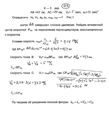 Контрольная работа: Центр скоростей и ускорение плоскодвижущегося шатуна
