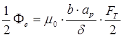 Здесь FT— мгновенное напряжение между торцевыми поверхностями полюсов; Fzb— то же между точками А' и В' (рис. 4.16, д); GТ— полная проводимость воздушного зазора между торцевой поверхностью правой половины полюса и плоскостью. Тогда Необходимо отметить, что в случае плоскопараллельного поля удельная проводимость ребра торца от ширины полюса не зависит, а для граней а и в они равны. Магнитная проводимость между правой и боковой гранью и плоскостью
