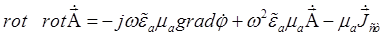 . Требуется определить векторы Для определения векторов поля по заданным источникам обычно применяют искусственный прием: сначала находят вспомогательные функции, а потом через них уже вычисляют векторы Выпишем уравнения Максвелла в комплексной форме с учетом сторонних сил и введем вспомогательные функции.