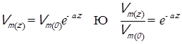 Рис.10Уменьшение амплитуды плоской волны при распространениии в среде с потерями. Расстояние Z, на котором амплитуда волны убывает (затухает) на 100 дБ, найдем, используя закон изменения амплитуды вдоль оси распространения, который можно записать как: