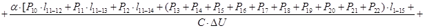 где S- сечение проводов участка, мм2 ; ΣМ- сумма моментов рассчитываемого и всех последующих участков с тем же числом проводов, что и у рассчитываемого, кВт·м; ΣМ = ∑Р· l , (1.50) Σα· m - сумма моментов всех ответвлений с числом проводов, отличающихся от числа проводов рассчитываемого участка, кВт·м; α - коэффициент приведения моментов, зависящий от числа проводов рассчитываемого участка и в ответвлениях. С