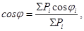 Рассчитываем средневзвешенное значение коэффициента мощности нагрузок: