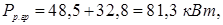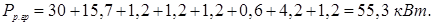 где Рмах1 , Рмах2 - суммарные мощности соответственно электродвигателей, электропотребителей и осветительной нагрузки ДЭС, кВт. Ру , Рон - установленные мощности соответственно электродвигателей и осветительной нагрузки, кВт; Кс - коэффициент спроса, 0,8. Ксн - коэффициент, учитывающий расход энергии на собственные нужды, 0,85. Кпот