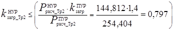 Аналогично коэффициент загрузки трансформатора №2 в НУР-е :