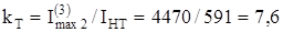 Коэффициент чувствительности токовой отсечки: