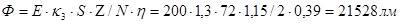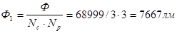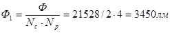 Световой потокФ1 лм, на одну лампу определим по формуле