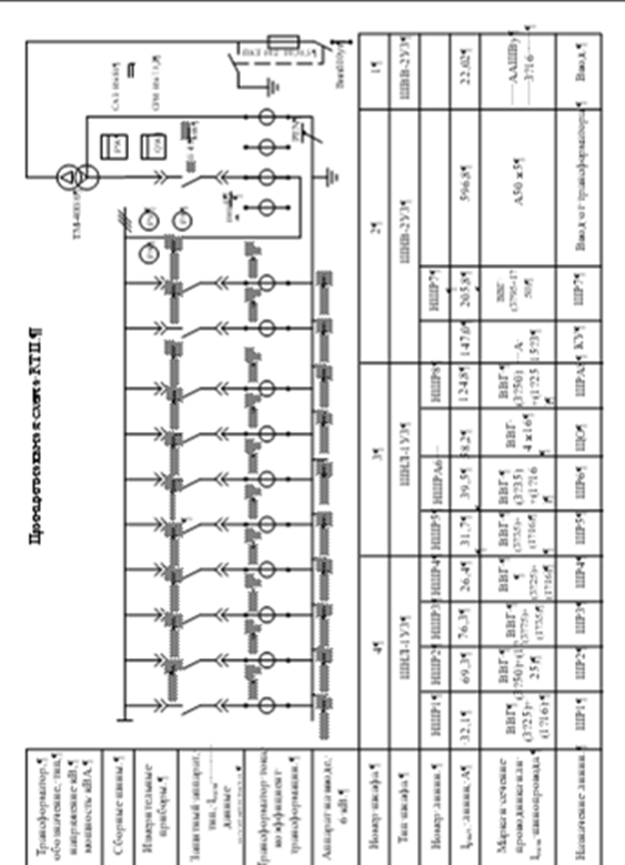В охране труда большое значение предаётся к стандартам безопасности труда (СС ТБ), что представляет собой комплекс взаимосвязанных стандартов, содержащих требования, нормы и правила, направленные на обеспечение безопасности, сохранение здоровья и работоспособности человека в процессе труда. Стандарт устанавливает требования по организации работ, обеспечивающие безопасность труда: 1. Требования и нормы по видам опасных и вредных производственных факторов. 2. Требования к зданиям и сооружениям. 3. Требования безопасности к производственному оборудованию и производственным процессам. 4. Требования к средствам защиты работающих. Основными мероприятиями для обеспечения нормальной среды в рабочей зоне должны быть: 1. Механизация тяжёлых ручных работ. 2. Защита от источников вредного излучения. 3. Перерывы в работе для отдыха. Все промышленные отходы металлов, дерева, пластмасс и других материалов должны быть утилизированы. В современном обществе резко возросли роль и задача экологии на основе оценки степени труда, приносимых природе. Охрана от вредных воздействий промышленных отходов и выбросов – одна из самых серьёзных проблем. Мир встревожен уроном, который человечество приносит природе. При работе ТЭЦ в атмосферу выбрасывается более 60% исходной энергии топлива в виде горячей воды и горячих дымовых газов. С ними выделяются окиси углерода, сернистые соединения, пыль, шлак. ГЭС изменяют уровень грунтовых вод, затопляют селения, происходит ухудшение состояния почвы. Линии эл. передач отчуждают территории в радиусе нескольких десятков метров, создаются эл. магнитные поля, которые неблагоприятно влияют на человека и создают помехи в сетях связи. Задачи по охране окружающей среды: 1. Ускоренное развитие ядерной энергетики, переход на газ ТЭЦ вместо угля. 2. Очистка вод в отстойниках. 3. Фильтры-самоуловители. 4. Создание систем замкнутого оборотного водоснабжения, что исключает сброс промышленных вод в водоёмы. 5. В дымовых трубах должны быть установлены фильтры (задержка золы). 6. Необходимо создавать безотходные технологические процессы. 7. Производить эл. энергию с использованием солнечных, ветровых, геотермальных источников. Россия принимает активное участие в работе природоохранительных организаций, сотрудничает в области охраны окружающей среды на основе межправительственных соглашений США, Бельгии. Развитие международного сотрудничества в области охраны окружающей среды будет способствовать успешному решению национальных и международных проблем охраны природы. 12. Схема принципиальная электрическая КТП