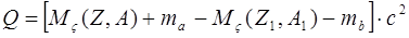 У випадку, коли відповідні маси спокою взяті у а.о.м., тепловий ефект реакції Q дорівнює: