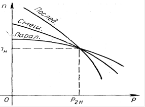 где знак плюс относится к согласному включению обмоток возбуждения, минус - к встречному. В зависимости от соотношения магнитных потоков обеих обмоток по свойствам двигатель приближается к двигателям параллельного либо последовательного возбуждения. Как правило, у двигателей смешанного возбуждения последовательная обмотка является главной (рабочей), а параллельная - вспомогательной. Благодаря магнитному потоку параллельной обмотки скорость вращения такого двигателя не может возрастать беспредельно при малых нагрузках (или на холостом ходу), т.е. двигатель не будет "разносить". Двигатели с согласным включением нашли широкое применение в тех случаях, когда необходим большой пусковой момент и изменение скорости при переменных нагрузках (включая малые нагрузки и холостой ход). Двигатели же со встречным включением применяют для получения постоянной скорости при изменяющейся нагрузке.