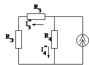 Рис. 6 Во второй подсхеме (рис. 7) действует только источник тока. ЭДС источника напряжения принимаем равной нулю E=0 (это соответствует закорачиванию источника напряжения).