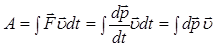 тобто роботу можна виразити через інтеграл від потужності й часу, а також через скалярний добуток вектора сили й вектора швидкості. В останньому випадку сила, перпендикулярна до вектора швидкості, роботи не виконує. З урахуванням другого закону Ньютона