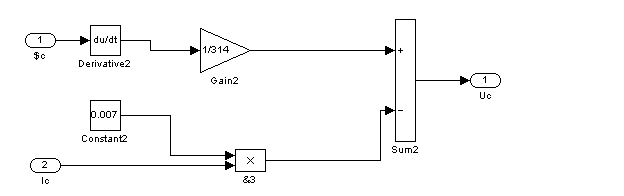 Рис.3 – Третий подблок первого суперблока, моделирующий Каждый из трёх подблоков представляем в виде субблоков. Для этого: а) выделяем подблок; б) с помощью правой кнопки мыши находим операцию “Createsubsystem”; в) образуем субблок; г) обозначаем входящие и выходящие параметры. 2. Моделирование индуктивностей