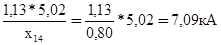 = где SК –мощность КЗ энергосистемы, МВ*А. Сворачиваем схему замещения относительно точки КЗ (К1): Х14 = (х1 + х7 ) // (х2 + х8 ) // (х3 + х9 ) = = Т.к. (х1 + х7 ) = (х2 + х8 ) = (х3 + х9 ) То х14