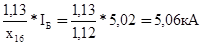 Результирующее сопротивление цепи генератора G4: х15 =х4 +х10 =1,86+1,33=3,19 Ом. Результирующее сопротивление цепи генераторов G5 и G6: Х16 =(х5 +х11 )/(х6 +х12 ); т.к. (х5 + х11 )=(х6 + х12 ), то Х16 =0,5*(х5 + х11 )=0,5*(1,37+0,86)=1,12 Ом. Результирующее сопротивление ветви энергосистемы (шин неизменного напряжения) хС =0,38 Ом (знак * опущен здесь и далее). Начальное значение периодической составляющей тока КЗ: IПО