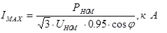 где КУ =1,8-ударный коэффициент нормированный, для выключателей. Проверка по двум условиям необходима потому, что для конкретной системы КУ может быть более 1,8. - на электродинамическую стойкость выключатель проверяется по предельным сквозным токам КЗ: IПО £IДИН ; iУ £iДИН , где iДИН - наибольший пик (ток электродинамической стойкости) по каталогу, IДИН - действующее значение периодической составляющей предельного сквозного тока КЗ. Проверка по двум условиям производится по тем же соображениям, которые указаны в предыдущем пункте. - на термическую стойкость выключатели проверяются по тепловому импульсу тока КЗ: ВК £IТЕР 2 *tТЕР , кА2 *с, где ВК - тепловой импульс тока КЗ по расчету, IТЕР - среднеквадратичное значение тока за время его протекания (ток термической стойкости) по каталогу, кА, tТЕР - длительность протекания тока термической стойкости (по каталогу), с. 6.4 Выключатели на генераторном напряжении Расчетный ток продолжительного режима в цепи генератора определяется по формулам: