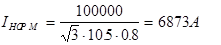 Выбор выключателя и разъединителя обусловлен величиной длительно допустимого тока 11200=IНОМ ³IMAX.РАСХ =7958 А. Выключатели и разъединители в схеме сборных шин ОРУ–110 кВ (в цепи блока генератор–трансформатор). Расчетный ток продолжительного режима в цепи блока генератор–трансформатор определяется по наибольшей электрической мощности генератора (генераторы G5 и G6 ТВФ-110-2ЕУ3 единичной мощностью S=137,5 МВ*А): IНОРМ