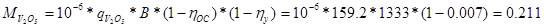 коэффициент, характеризующий выход оксидов азота на 1т сожжённого топлива, кг/т, D=420 т/ч –номинальный, DФ =380 т/ч–фактический b1 =0,178+0,47*1,5=0,833–безразмерный коэффициент, учитывающий влияние на выход оксидов азота качества сжигаемого угля. Исходная формула b1 =0,178*0,47*NГ , где NГ =1,5 %. b2 – коэффициент учитывающий конструкцию горелок (для вихревых горелок БКЗ–420 b2 =1) b3 – коэффициент учитывающий вид шлакоудаления (т.к. шлакоудаление твердое , то b3 =1). На котле БКЗ–420–140 отсутствует рециркуляция воздуха, следовательно ε1 –коэффициент рециркуляции, равен нулю. Кроме того нет и подачи части воздуха помимо основных горелок, т.е. ε2 =1–коэффициент характеризующий снижение выбросов оксидов азота при двухступенчатом сжигании топлива. Выбросы диоксида азота рассчитываются по формуле: МNO 2 =0,8*МNO x =0,8*487,332=389,86 г/с МNO =0,13*МNO x =0,13*487,332=63,35 г/с 7.14.5 Количество выбросов оксидов ванадия