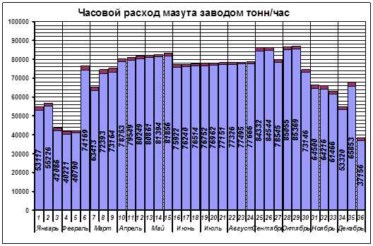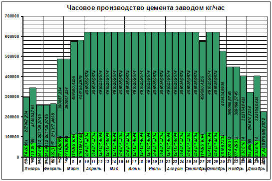 Расход газа на производство клинкера заводом в год будет равен 774943667 м3 . График потребления газа заводом представлен на рис. 3.