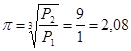 Р1 -начальное давление воздуха перед компрессором, Р1 =1ат; Р2 -конечное давление воздуха после компрессора, Р2 = 9ат. k =1,4 – показатель изоэнтропы для двухатомных газов;