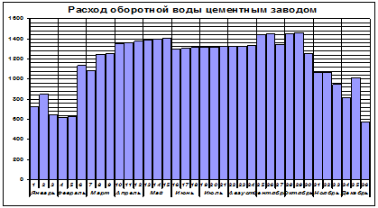 Для остальных 35 рабочих декад расчет аналогичен, по полученным результатам строится гистограмма расхода оборотной воды (рис 6).