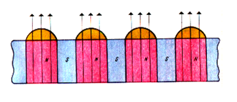 Рис .10 Реальна картина набагато складніша. Структура проміжного стану, отримана при дослідженні олов'яної кулі, показана на рисунку 12,б (надпровідні області заштриховані). Не треба думати, що картина ця статична. Співвідношення між кількостями S- і N-областей безупинно міняється. З ростом поля надпровідна S-фаза "тане" за рахунок росту N-областей і при індукції В = Вк зникає цілком. І все це зв'язано з утворенням і зникненням границь між S- і N-областями. А утворення всякої поверхні розділу між двома різними станами повинне бути зв'язане з додатковою енергією. Ця поверхнева енергія грає дуже істотну роль і є важливим чинником. Від неї, зокрема , залежить тип надпровідника. На рисунку 11 схематично показана границя між нормальною і надпровідною областями. У нормальній області магнітне поле дорівнює критичному (чи більше). На границі немає різкого переходу від цілком нормального стану до цілком надпровідного. Магнітне поле проникає на відстань λ у глибину надпровідної області, і число " надпровідних " електронів n на одиницю об'єму повільно підвищується на відстані, рівній деякій характеристичній довжині, яку називають довжиною когерентності ξ. Глибина проникненняλ, якмивже говорили, маєпорядок 10-5 .. 10-6 см , а довжина когерентності для чистих металів, по оцінках англійського фізика А. Піппарда, повинна бути порядку 10-4 см. Як показали радянські фізики В. Л. Гінзбург і Л. Д. Ландау, поверхнева енергія буде позитивною, якщо відношення λ/ξ, менше ніж 0,7. Цей випадок реалізується в речовин, що прийнято називати надпровідниками І роду. Надпровідники першого роду, чи м'які надпровідники, як правило, це чисті метали. Отже, у надпровідниках І роду поверхнева енергія позитивна, тобто в нормальному стані вища, ніж у надпровідному. Якщо у товщині такого матеріалу виникає нормальна зона, то для створення границі між надпровідною і нормальною фазами необхідна витрата деякої енергії. Це і пояснює причину розшарування надпровідника в проміжному стані тільки на кінцеве число зон. При цьому розміри S- і N-областей можуть бути порядку міліметра, їх можна бачити навіть неозброєним оком, покриваючи поверхню зразка тонким магнітним чи надпровідним (діамагнітним) порошком. Магнітні порошки притягаються полем і розташовуються на виході нормальних шарів, як показано на рисунку 11.