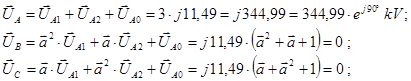 Для построения векторной диаграммы напряжений в месте к.з. должны быть предварительно определены напряжения прямой, обратной и нулевой последовательностей. Эти составляющие вычисляются, согласно соотношениям, данным в таблице 3.2[3]. Для определения этих напряжений в именованных единицах необходимо их умножить на базисное сопротивление Zб :