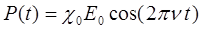 атомы или молекулы среды поляризуются: отрицательно заряженные электроны под действием поля смещаются относительно положительно заряженных ядер, появляется электрический дипольный момент, причем смещение определяется величиной и знаком напряженности поля. Знак и величина напряженности светового поля изменяются с частотой Дипольный момент, приобретённый отдельным атомом под действием световой волны: