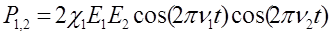 На «фотонном языке» это есть определенный четырехфотонный процесс — уничтожаются три фотона энергиями Возможны также процессы генерации оптических гармоник более высоких порядков — четвертой гармоники, пятой и т. д. Нелинейная поляризация среды позволяет осуществлять смешение частот.Пусть поляризация нелинейной среды описывается выражением: