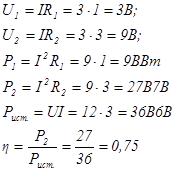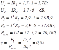 Контрольные вопросы 1. Схема замещения составляется для облегчения расчёта эл. цепи, т.е. схема, отображающая свойства цепи при определённых условиях. 2. Сила тока прямо пропорциональна ЭДС и обратно пропорциональна сумме сопротивлений двух резисторов, и обозначается: I = E /R1 +R2 +R0 ; I = E /R1 +R2 . 3. Номинальный режим. Рабочий режим – это режим, при котором характеристики могут отклоняться. Режим холостого хода – R, I0, U=E. Режим короткого замыкания – R0, I=E/R+R0 . 4. Если сила тока увеличится, то U1 -увеличивается, U2 -уменьшается. 5. При увеличении R2 – увеличивается на нём падение напряжения U2 , U=U1 +U2 U1 =U-U2 , т.е. U1 -уменьшается. 6. Если R2 – уменьшается, то I – увеличивается. 7. При увеличении I – увеличивается P и P1 . 8. При увеличении I – уменьшается P2 . 9. При уменьшении R2 – уменьшается КПД. |