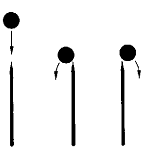 Рис. 1. Стальной шарик, падающий на лезвие бритвы Представим себе установленное вертикально бритвенное лезвие, на которое сверху падает стальной шарик. Справа или слева от лезвия упадет шарик, зависит от того, какой точкой своей поверхности он столкнется с лезвием; при этом исход дела решают мизерные доли миллиметра. Чуть левее от центра — и шарик отклоняется вправо, чуть правее — отклоняется, соответственно, влево. Совершенно очевидно, что весь процесс строго предопределен, но несмотря на предопределенность, ему все же присуща некоторая случайность. Это происходит потому, что мы в принципе не можем абсолютно точно предопределить или замерить начальное положение шарика. Однако именно малейшие сдвиги от первоначального положения шарика определяют в конечном счете его траекторию. Совершенно то же происходит при игре в кости. Кубик, конечно, обязательно упадет на стол — но то, которой из граней он коснется поверхности, с точно такой же степенью чувствительности зависит от начальных условии, как и в случае с шариком, падающим на лезвие. Мы видим, как начинает размываться грань, разделяющая случайные и строго предопределенные события, хотя пограничные случаи в философском смысле могут быть четко определены и для тех, и для других событий, да и существовать-то должны, собственно, только такие «пограничные случаи». Решающим является тот факт, что малейшая неточность в начальном положении оказывает впоследствии воздействие на весь дальнейший ход макроскопических событий. Порой практики, изобретатели и просто любители сотворить что-нибудь собственными руками оказываются проницательнее любого ученого. Уже долгое время существует целая индустрия азартных игр, использующая автоматы, созданные на основе принципа подражания случайности, поразительно удачно воплощаемого в строго предопределенных механических процессах. Допустим, такая машина воспроизводит падение шарика на лезвие; при каждом новом броске траектория шарика остается для игрока непредсказуемой. Исход такой игры — дело случая, игра наудачу, однако при этом каждый этап игры вполне однозначно определен. Пример одного из довольно известных игровых автоматов такого типа представлен на Рис. 2.
