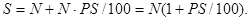 Якщо на грошове зобов'язання нараховуються прості відсотки по ставці PS, ціна, по якій воно буде погашатися складе: