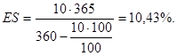 US - 10 %; h - 100 днів; H - 360 днів; He – 365 днів. По формулі (49) одержимо:
